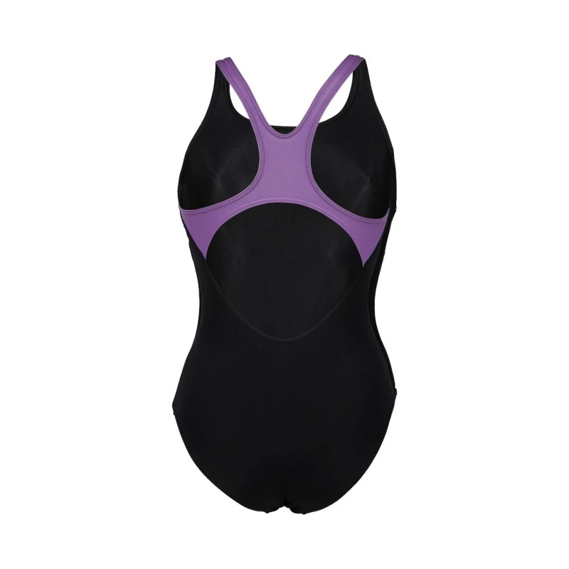 Dit minimale atletische eendelige stuk heeft contrasterende details die de donkere kleur van het pak compenseren.