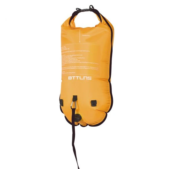 De BTTLNS Kronos 1.0 Saferswimmer zwemboei 28 liter verhoogd de veiligheid tijdens het open water zwemmen door het gebruik van felle kleuren.