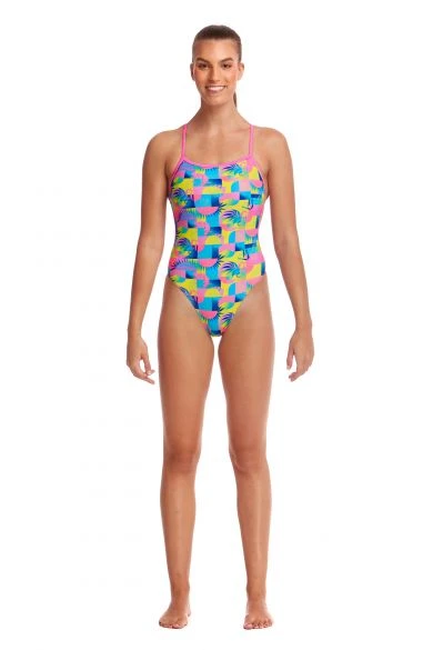 De Funkita Sunkissed twisted badpak dames is voorzien twee enkele schouderbandjes die op de rug samenkomen en daar om elkaar heen binden.