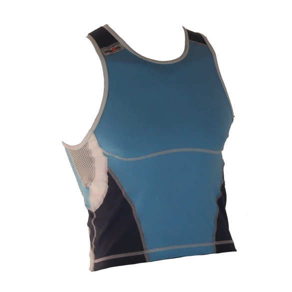 De Ironman tri top mouwloos new olympic blauw heren is de verbeterde versie van de populaire olympic tri top van Ironman.