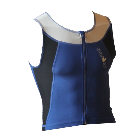 De Ironman tri top front zip mouwloos Full zip blauw/zwart heren is een super tri top met een extra brede hals.