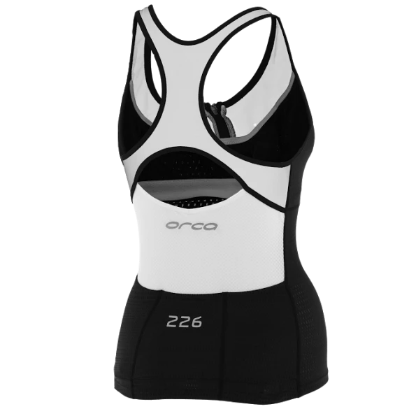 Zeer functionele top, optisch ver voor op zijn voorgangers, de Orca 226 tri top zwart/wit dames benadrukt de vrouwelijke kant van de sport en heeft een perfecte pasvorm.