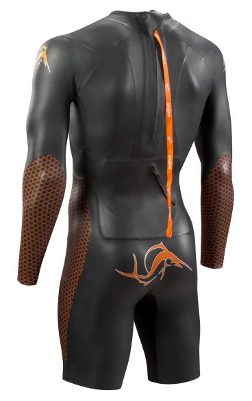 Vooraan twee zakken aan de binnenkant en een grote achterzak met rits. De achterzak houdt ook het noodfluitje, welke bevestigd kan worden aan de voor- of achterrits tape. Het oksel paneel geeft geen weerstand, voor inspanningsloos en efficiënt zwemmen. De dunne neopreen mouwen kunnen worden ingekort. Ten slotte beschikt dit wetsuit over ergonomisch geplaatste panelen in de lies-, been- en heupstreek, voor een perfecte pasvorm.