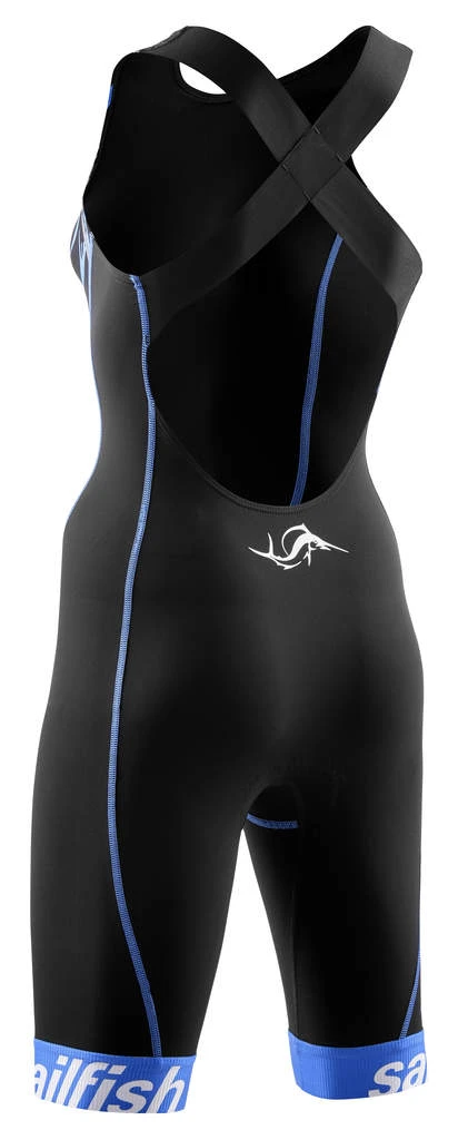 De Sailfish Trisuit pro zwart/blauw dames is gemaakt van het vederlichte en waterafstotende Aqua Tech materiaal.