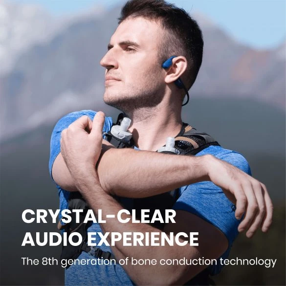 Uitgerust met de nieuwste 8e generatie bone conduction technologie en stuurt de audio direct naar het binnenoor.