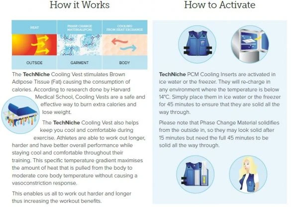 Het TechNiche KewlFit koelvest weight management dames is speciaal ontworpen om bruin vetweefsel (BAT) te stimuleren bij een optimale 14 graden.