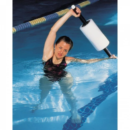 Dit drijfbaar apparaat voorziet in drijfvermogen en weerstand voor het versterken van het bovenlichaam en voor het versterken en stretchen van de romp en de lage rug.